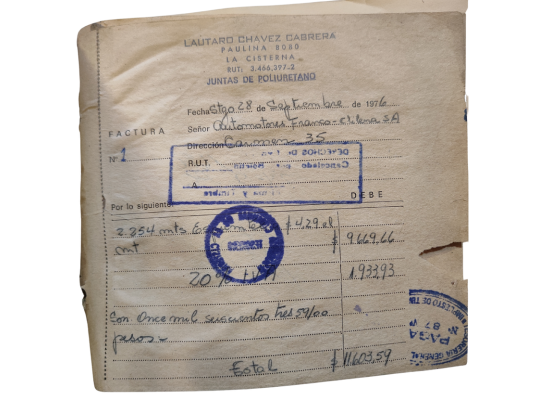 Factura N°1 de JPF Industrial, emitida el 28 de septiembre de 1976.